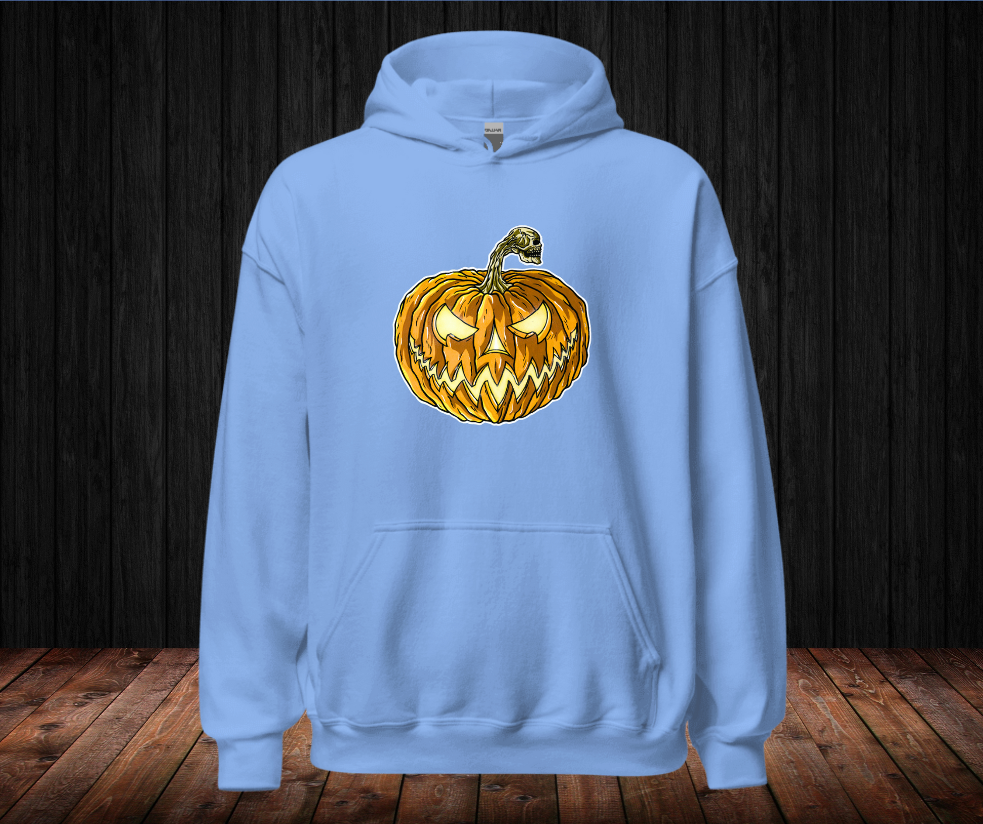 Esta sudadera unisex presenta la obra original Pumpkin, un diseño pintado a mano con acrílicos sobre tablero, escaneado y estampado con gran detalle. El resultado es una calabaza de estilo gótico y fantasía oscura que aporta un toque único y artístico. Fabricada con una suave mezcla de algodón pre encogido y poliéster, esta sudadera ofrece comodidad y durabilidad. Su diseño clásico con capucha y mangas largas la convierte en una prenda versátil para uso diario o para ocasiones especiales. La impresión DTF de alta calidad garantiza gráficos nítidos y duraderos.