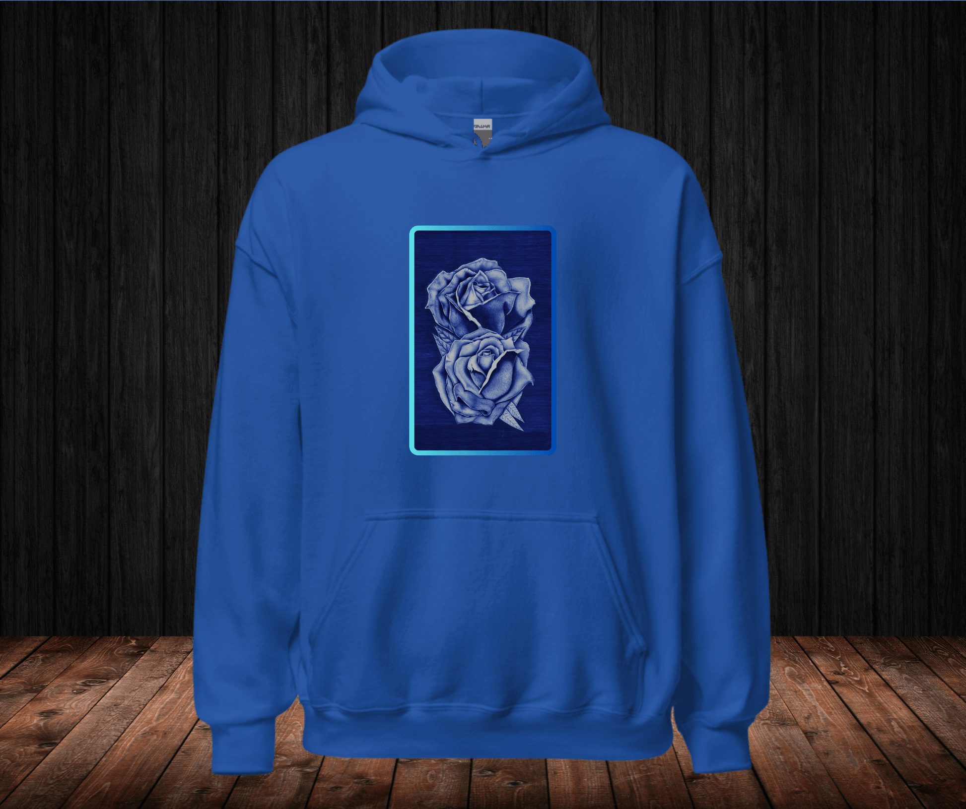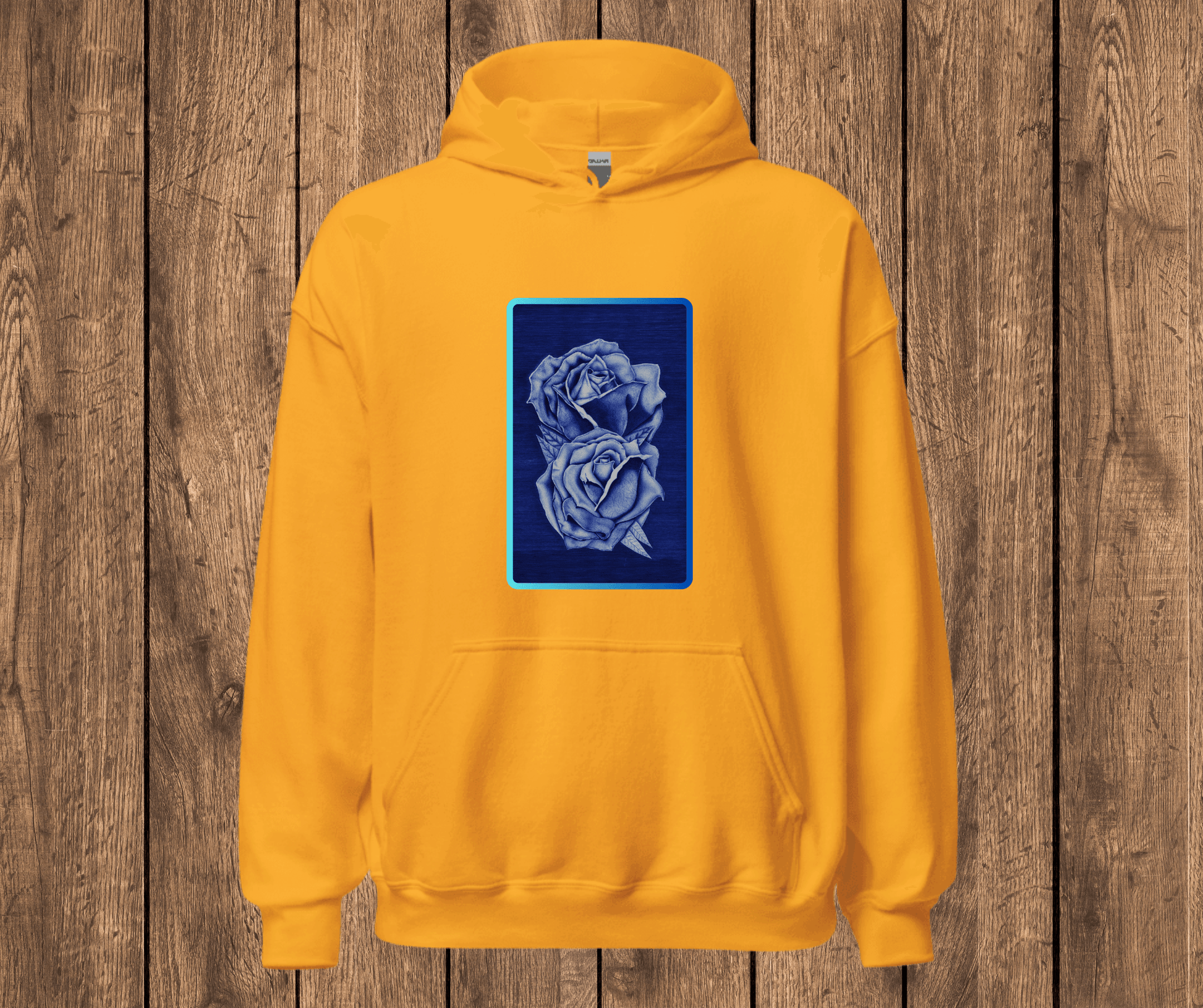 Sudadera con Capucha – Rosas Azules a Bolígrafo