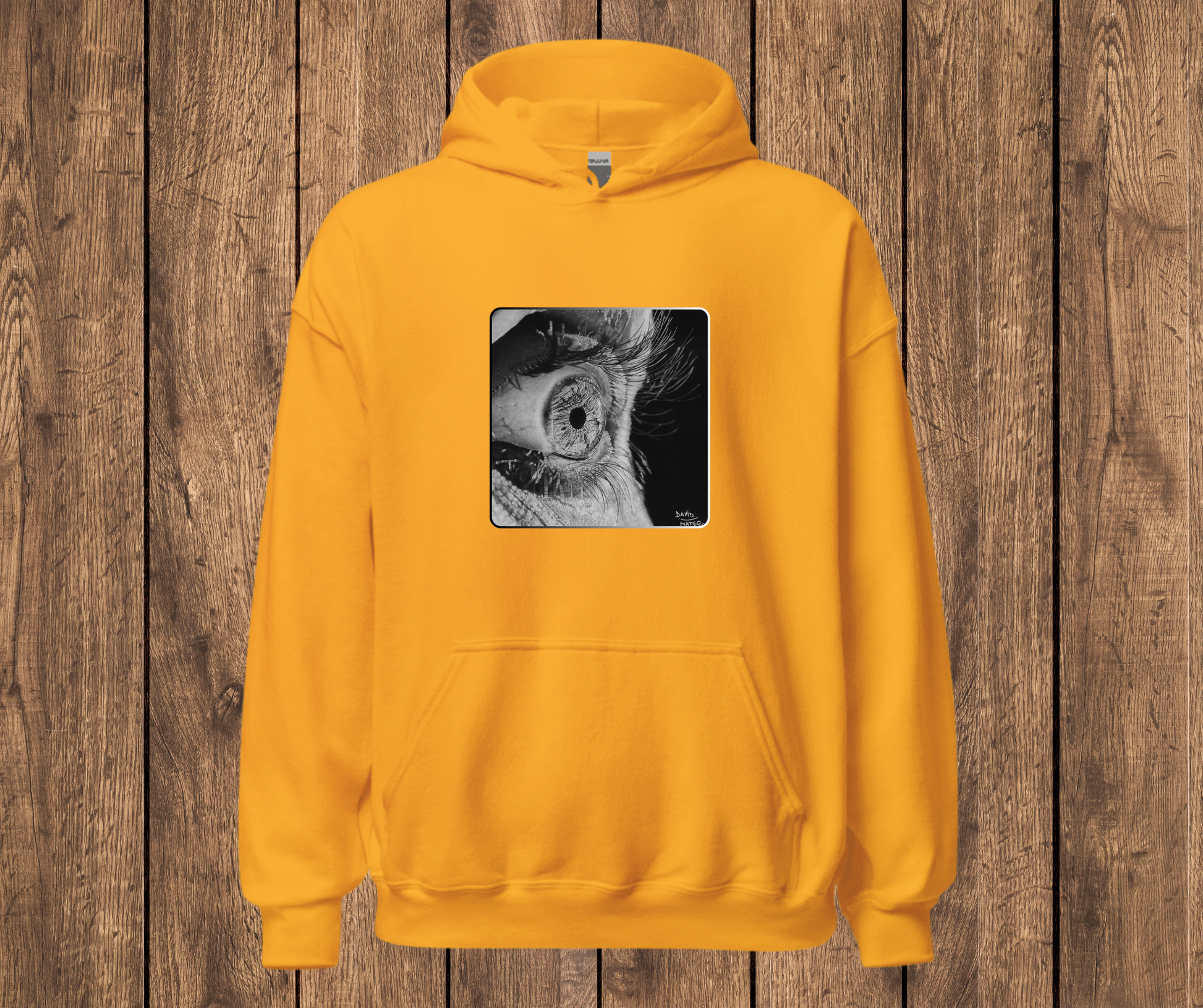 Esta sudadera artística presenta el exclusivo diseño "Ojo por ojo" impreso con tecnología DTF de alta calidad para un acabado impecable y duradero. Esta sudadera con capucha, en blanco y negro, combina el estilo de una obra de arte moderna con un suave tejido de algodón y poliéster para mayor comodidad diaria. Esta acogedora sudadera cuenta con una capucha de doble forro, puños deportivos de punto acanalado y un amplio bolsillo tipo canguro para mayor funcionalidad. Esta sudadera urbana es elegante y versátil, ideal para el día a día, las noches más frescas o como prenda destacada.