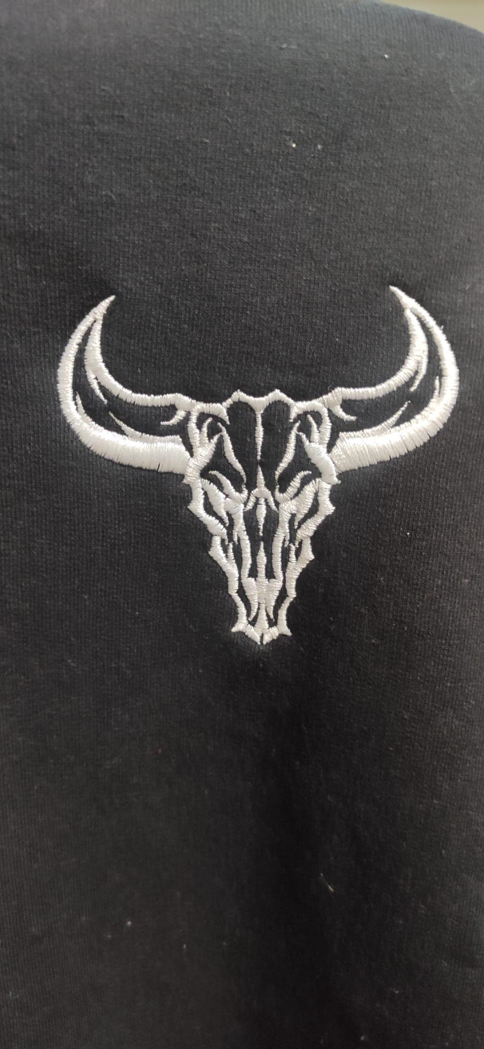 • Logo: Calavera de toro original de David Mateo en bordado plano en el pecho.
